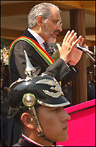 A Mesa se le acercaron entonces varias personalidades para proponerle que incursionara en la política. El se negó. Pero en enero del 2002 decidió colgar el micrófono y ahora por azar de los hechos es el flamante Presidente Constitucional de Bolivia.
